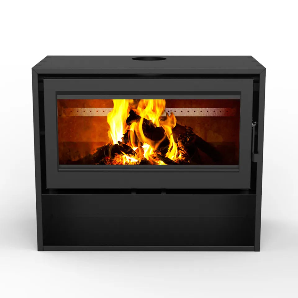 高温炉内で美しい炎を生む3次燃焼薪ストーブ。針葉樹も使用可能で、天板は保温・湯沸かし向き。大きな扉のため薪投入時に煙漏れが生じやすく、高気密住宅は不向き。初期不良は発送から2ヶ月以内対応。ガラス・バーミキュライトは部品販売も可能。配送は福山通運営業所止め。自宅にフォークリフトがあれば直送も可(地域により追加費用)。初回燃焼時は煙が出るため十分な換気を行ってください。
